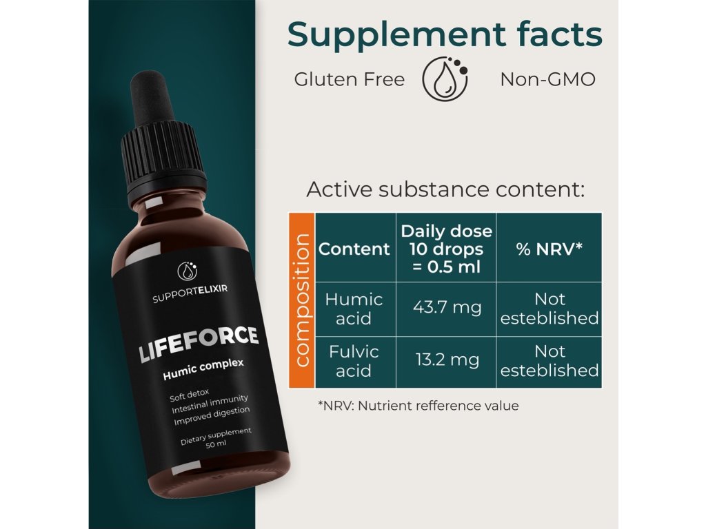 Investujte do svého zdraví a objevte transformační sílu Supportelixir LIFE FORCE Humic Complex. Přidejte do košíku ještě dnes a pocítíte rozdíl v detoxikaci a posílení imunity!